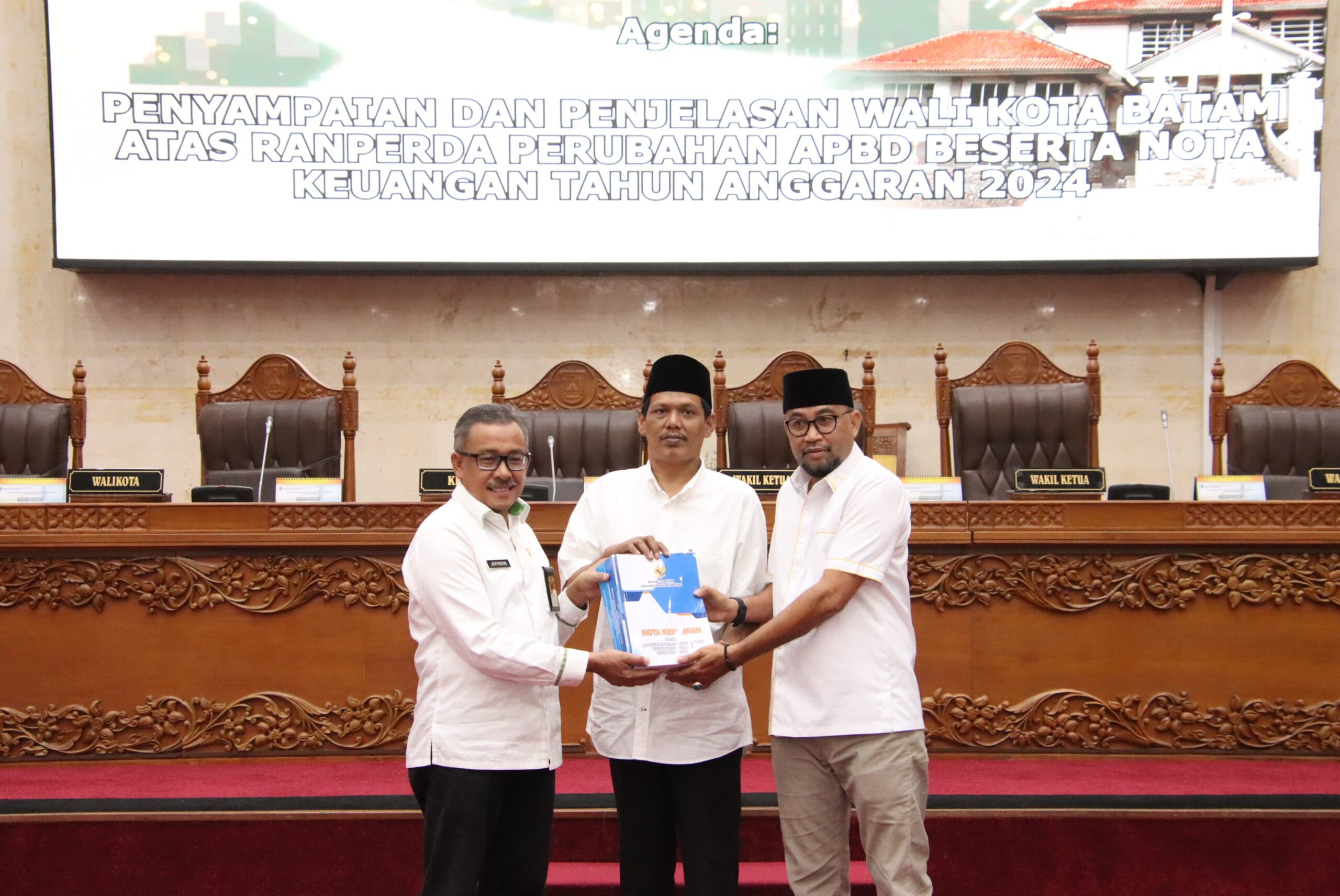 DPRD Kota Batam menggelar rapat paripurna dengan agenda Laporan Bapemperda atas Penyusunan Ranperda Inisiatif DPRD Kota Batam Tahun 2025, dan Penyampaian dan Penjelasan Wali Kota Batam atas Ranperda tentang Penyelenggaraan Angkutan Umum Massal, Rabu (23/10/2025) siang. Rapat tersebut dipimpin langsung Ketua DPRD Muhammad Kamaluddin SPd didampingi Wakil Ketua I Haji Aweng Kurniawan, Wakil Ketua II Budi Mardiyanto SE MM dan Wakil Ketua III Hendra Asman SH MH.