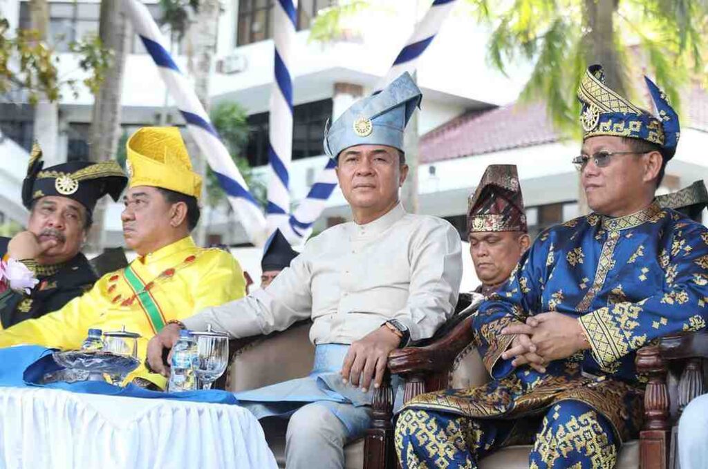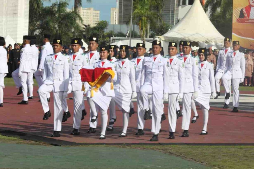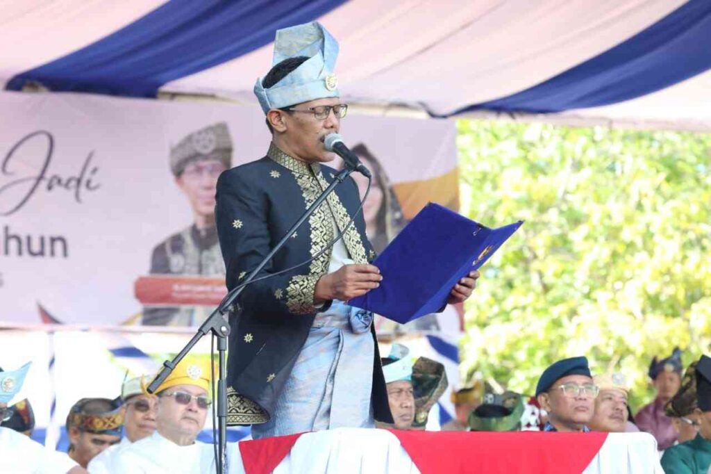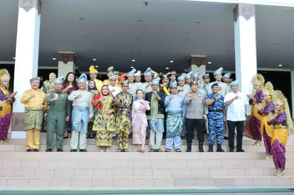BATAM – Sejumlah pimpinan dan anggota DPRD Kota Batam mengikuti upacara sempena memperingati Hari Jadi Batam ke-196 yang digelar di Dataran Engku Puteri, Batam Center, Kamis (18/12/2025). Upacara berlangsung khidmat dengan dihadiri berbagai unsur pimpinan daerah dan elemen masyarakat.