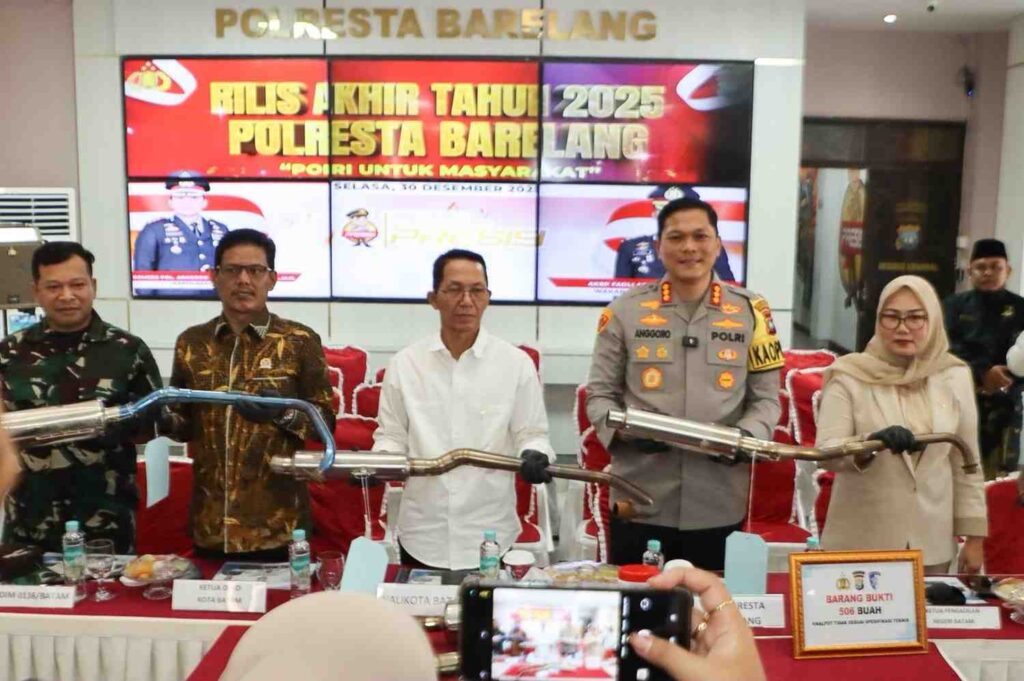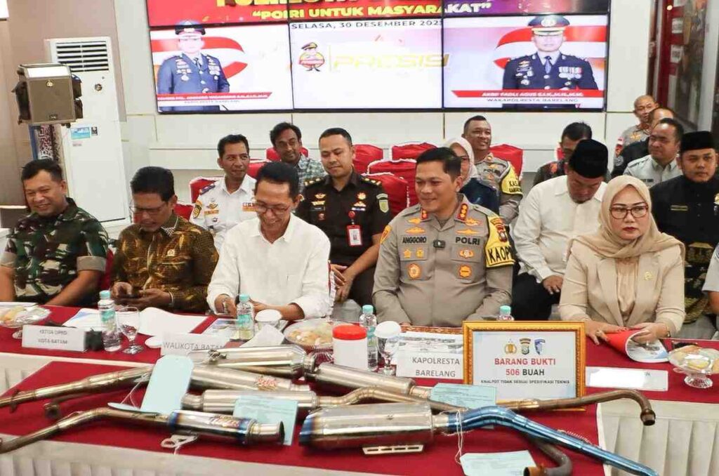 BATAM – Ketua DPRD Kota Batam, Haji Muhammad Kamaluddin, menghadiri kegiatan Rilis Akhir Tahun 2025 Polresta Barelang sekaligus pemusnahan barang bukti knalpot sepeda motor yang tidak sesuai spesifikasi hasil pengungkapan Polresta Barelang. Kegiatan tersebut digelar di Mapolresta Barelang, Batam, Selasa (30/12/2025).