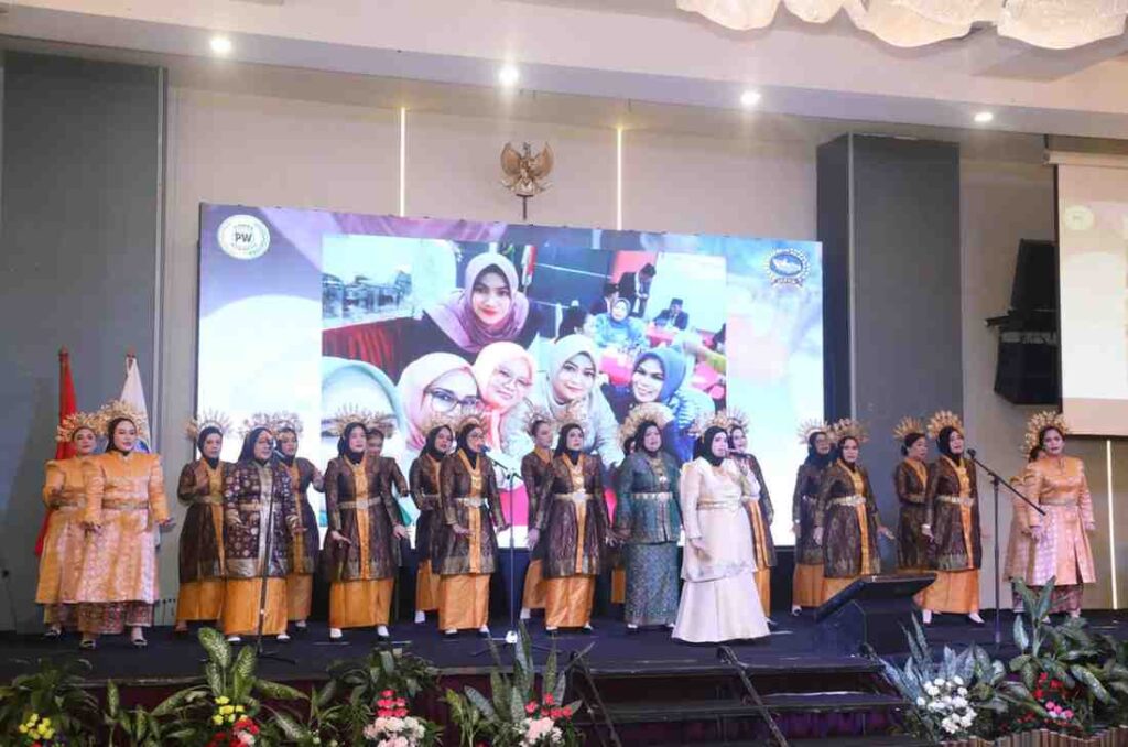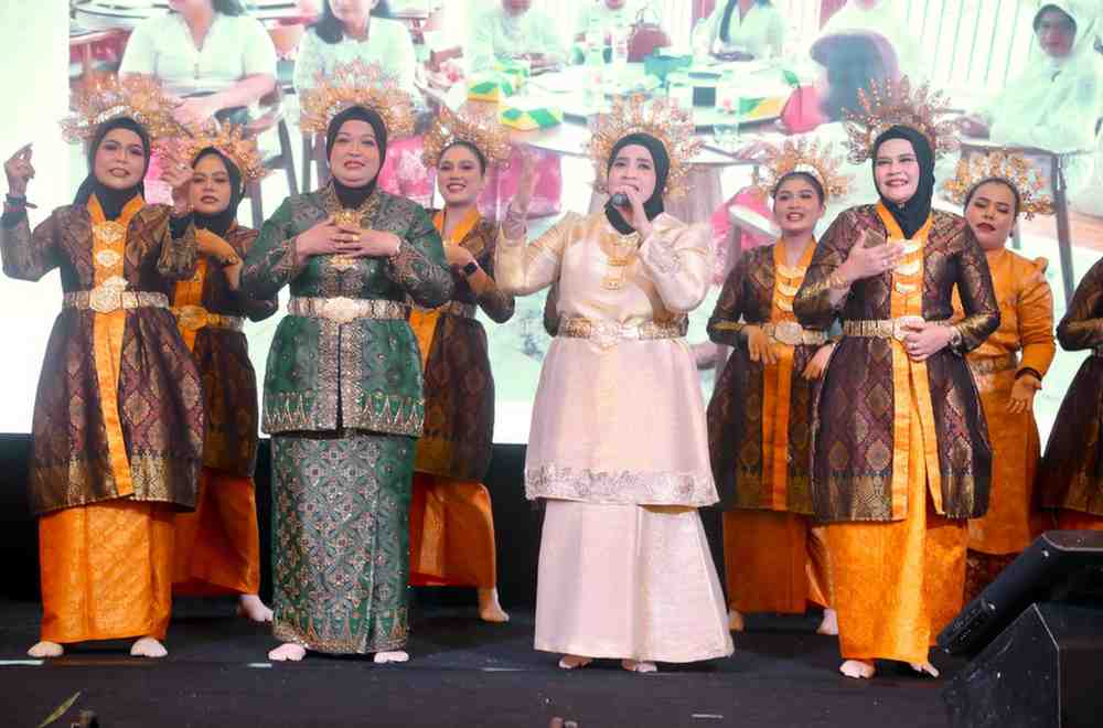 Acara pembukaan Rakernas Adeksi 2026 berlangsung meriah dengan penampilan seni berupa nyanyian dan tarian dari Persatuan Istri Anggota Dewan (Piswan) Kota Batam, yang turut menghibur para tamu undangan dan peserta Rakernas.(*)